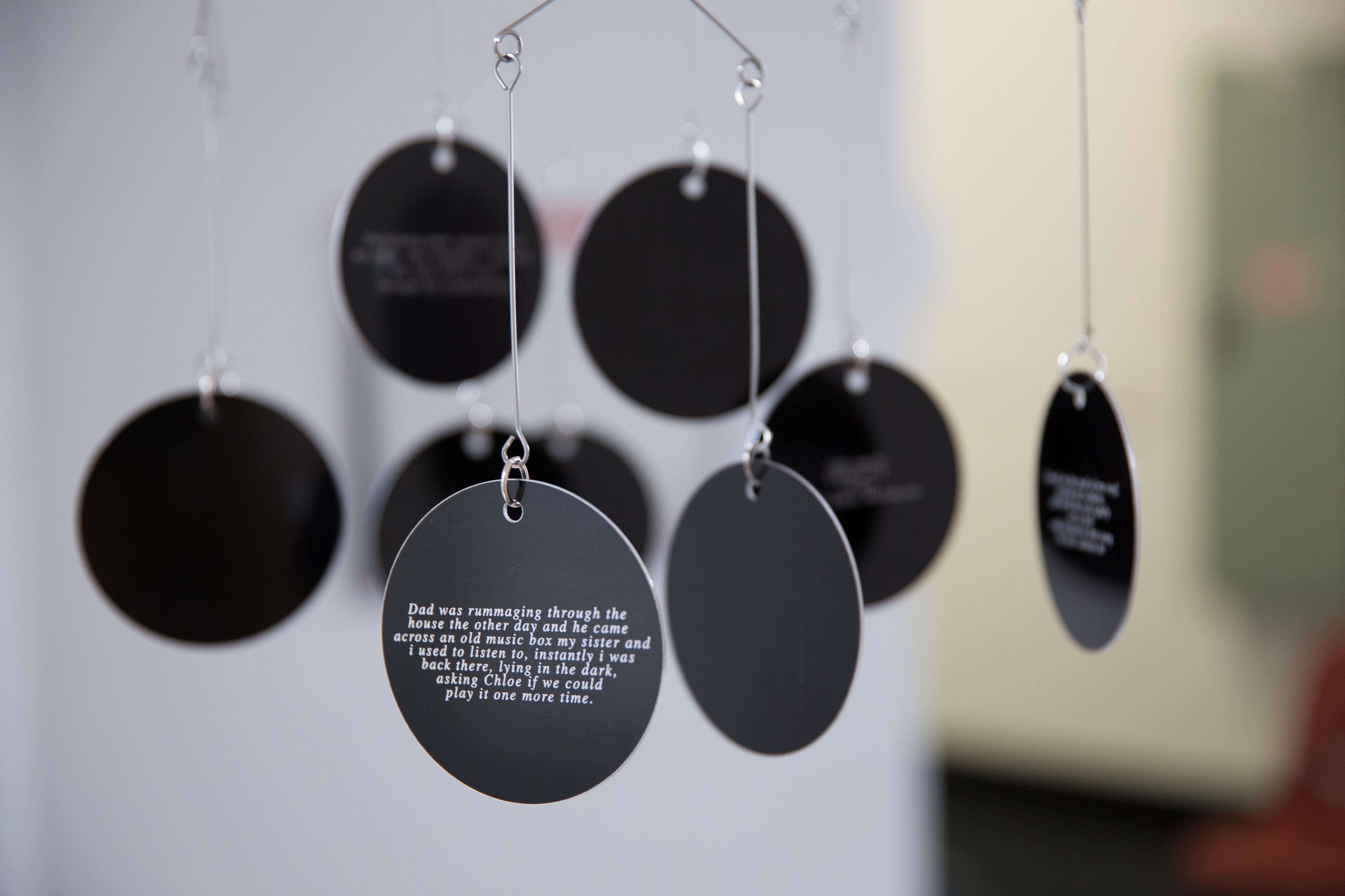 Today is what you make of it (suspended thoughts), 2018, aluminium, wire